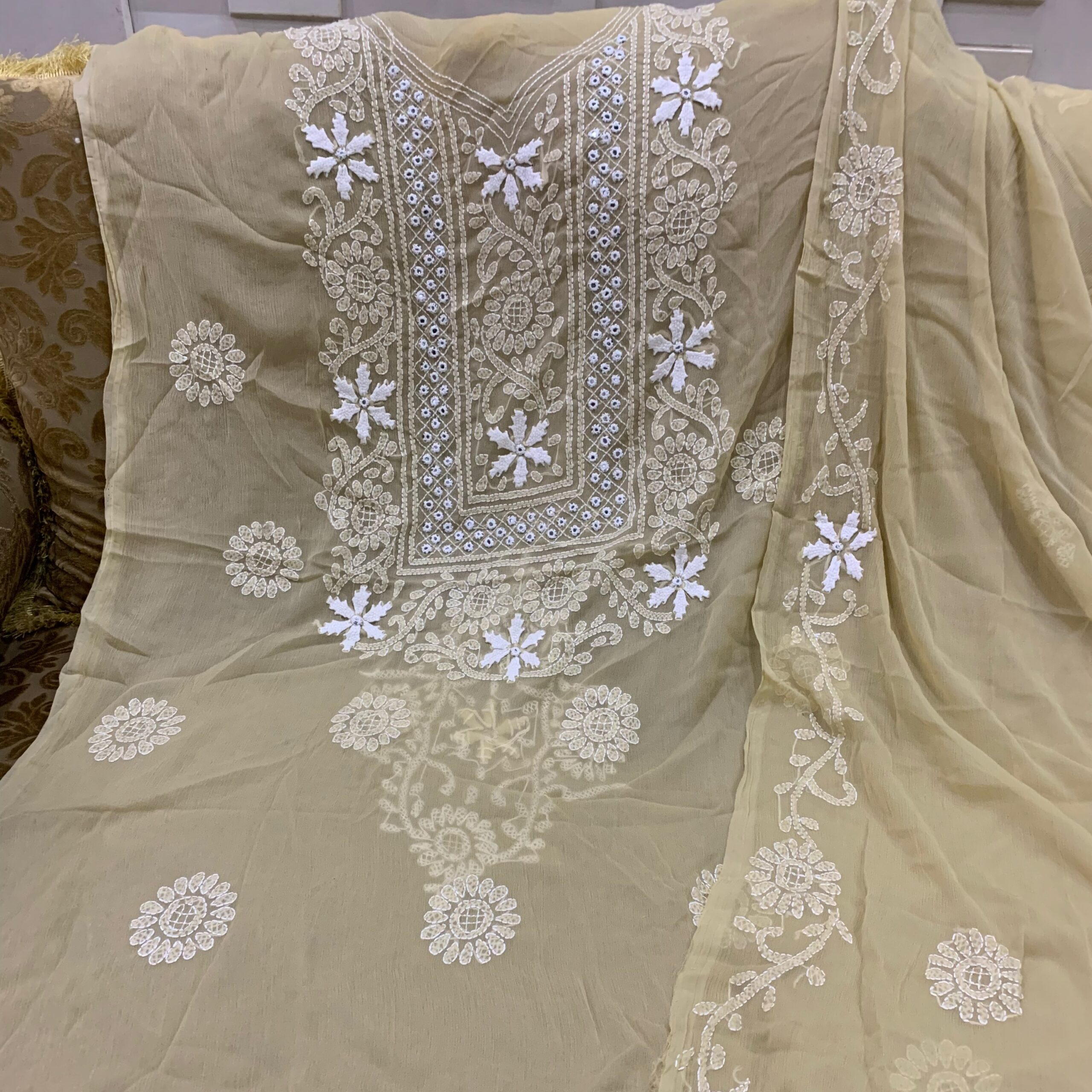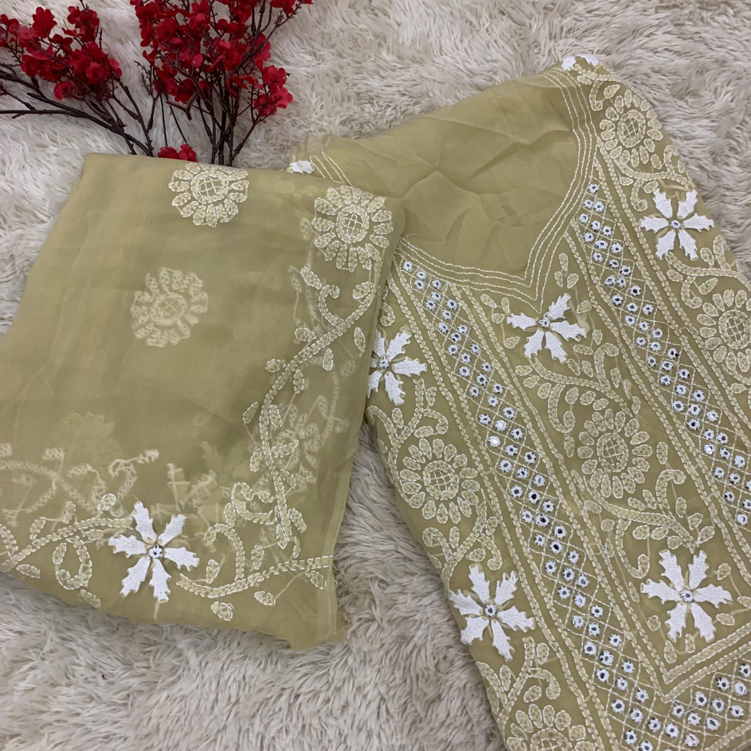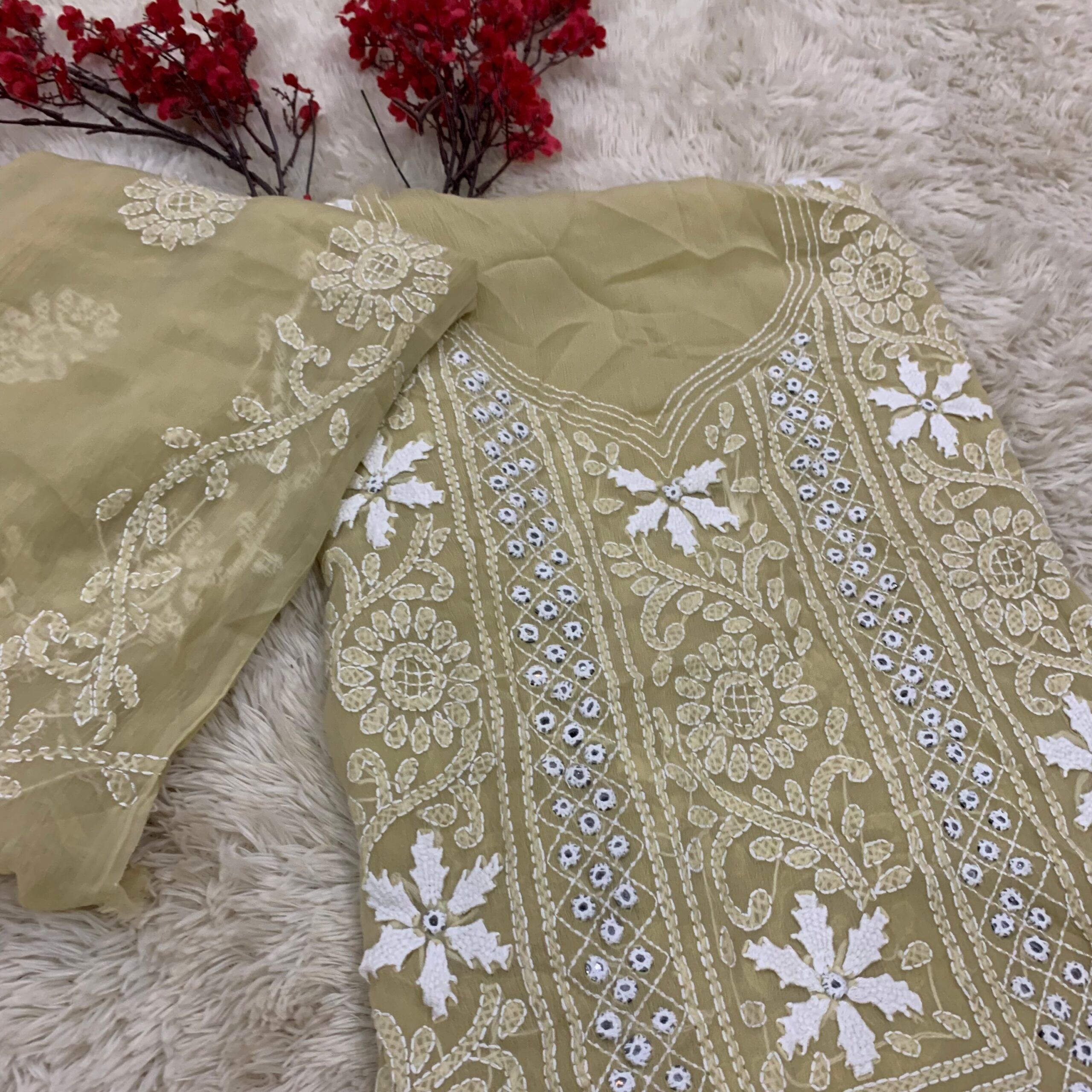 Pure hand embroidered 2piece unstitch dress